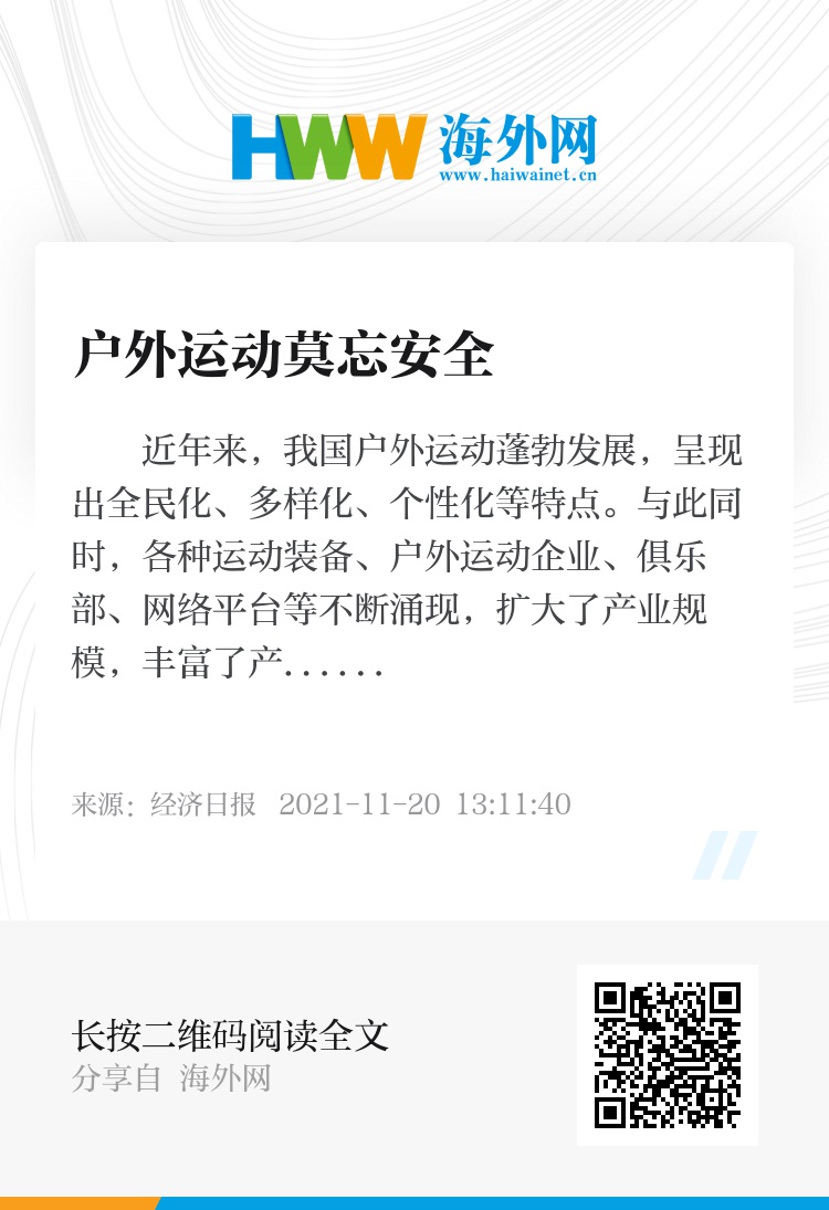 从活动组织方来看,大型户外运动赛事一定要筑牢安全底线,时刻把参赛者的生命安全放在第一位。今年的甘肃白银山地马拉松事故就给类似赛事活动敲响了警钟。无论是赛前准备,还是面对突发情况的应急救援,都是人命关天的大事,须臾不得放松警惕。特别是像翼装飞行、野外攀岩、跑酷等危险系数高的极限户外运动,相关管理部门、活动组织企业、俱乐部、协会等,一定要建立科学、规范、安全的管理制度,积极开展安全自查,把安全隐患消除在萌芽状态。同时,也要向大众普及户外运动的风险知识、自救常识,切实为户外运动参与者保驾护航,确保户外运动市场健康平稳发展。(常 理 来源:经济日报)