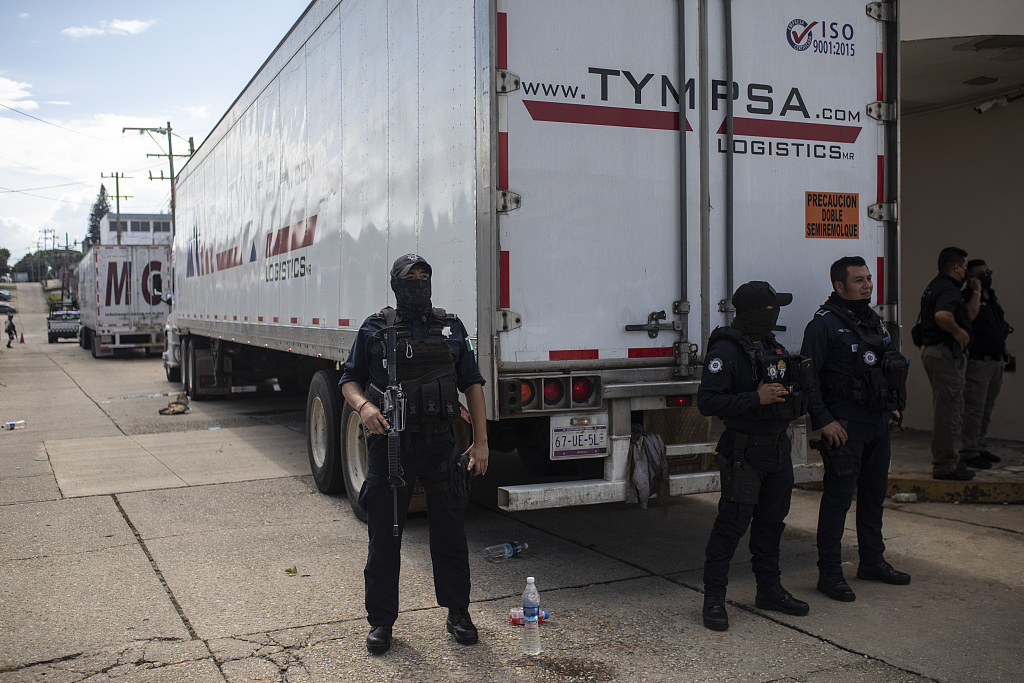 当地时间11月20日,墨西哥国家移民局在该国韦拉克鲁斯州截获2辆大型集装箱货车,并从这两辆货车中解救了来自12个国家的600名移民。墨西哥国家移民局表示,将根据具体情况将这些移民遣返回原籍国或留在墨西哥进行下一步处理。图片来源:人民视觉