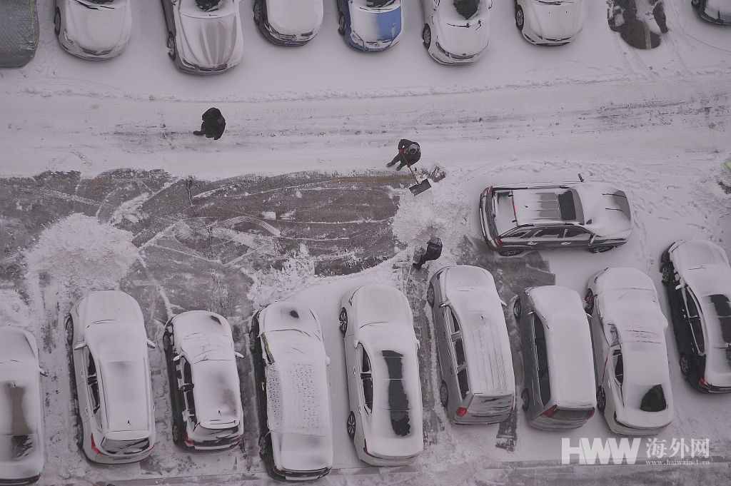 11月22日,哈尔滨市还在继续降雪。经过昨天一夜的降雪,整个城市变成了一个白色的世界,地上铺上了一层厚厚的积雪,给车辆和行人通行带来了许多不便。清雪车辆和人员在努力清理街路上的积雪,减小对交通的影响。(供图:视觉中国)