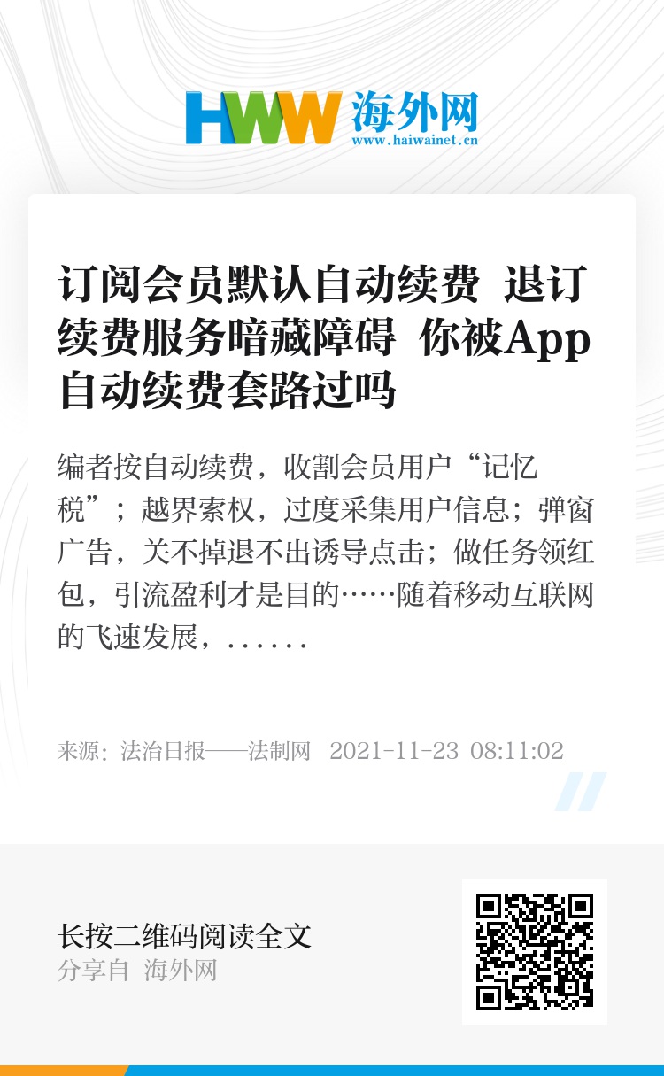 随着越来越多App上的优质内容只为会员提供,很多消费者不得不选择订阅App会员,但现实中像唐飞这样“被自动续费”的人并不少。