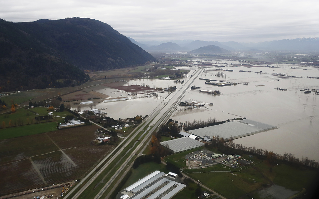 当地时间2021年11月22日,加拿大不列颠哥伦比亚省一个农场被洪水淹没。连日来,加拿大西部省份出现极端天气状况,该国四大省之一的不列颠哥伦比亚省遭遇了被当地官员称作“500年一遇”的特大洪灾,交通陷入瘫痪,必要民生物资匮乏,将近两万人受困。图片来源:视觉中国