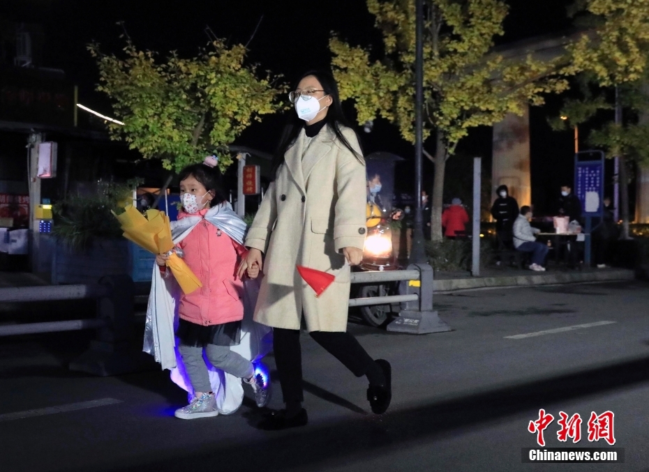 11月23日零时,四川省成都市成华区理工东苑(西区)由高风险地区调整为低风险地区,解除封控区管理。至此,成都全域中高风险地区全部清零。图为理工东苑(西区)的居民走出小区。中新社记者 王磊 摄