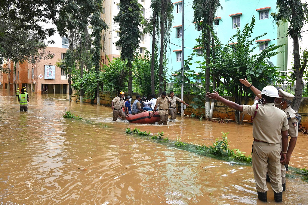暴雨过后 印度班加罗尔居民区被洪水淹没