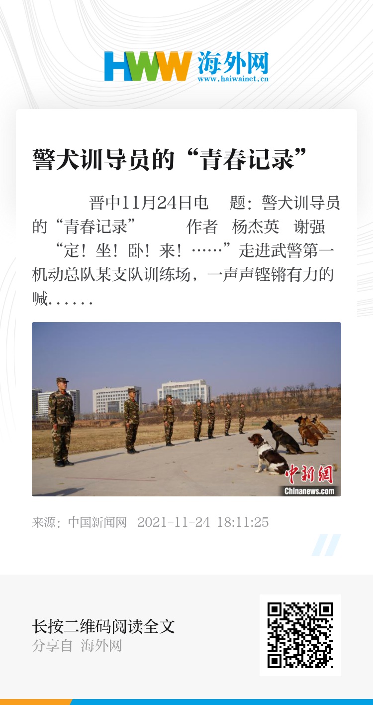 中新网晋中11月24日电 题:警犬训导员的“青春记录”