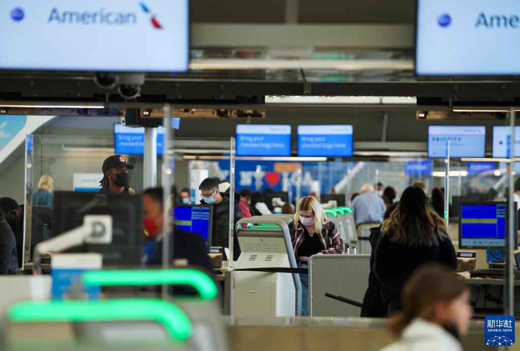 11月24日,乘客在美国纽约拉瓜迪亚机场办理乘机手续。新华社记者 王迎 摄