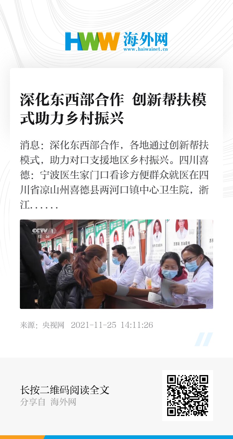 央视网消息:深化东西部合作,各地通过创新帮扶模式,助力对口支援地区乡村振兴。