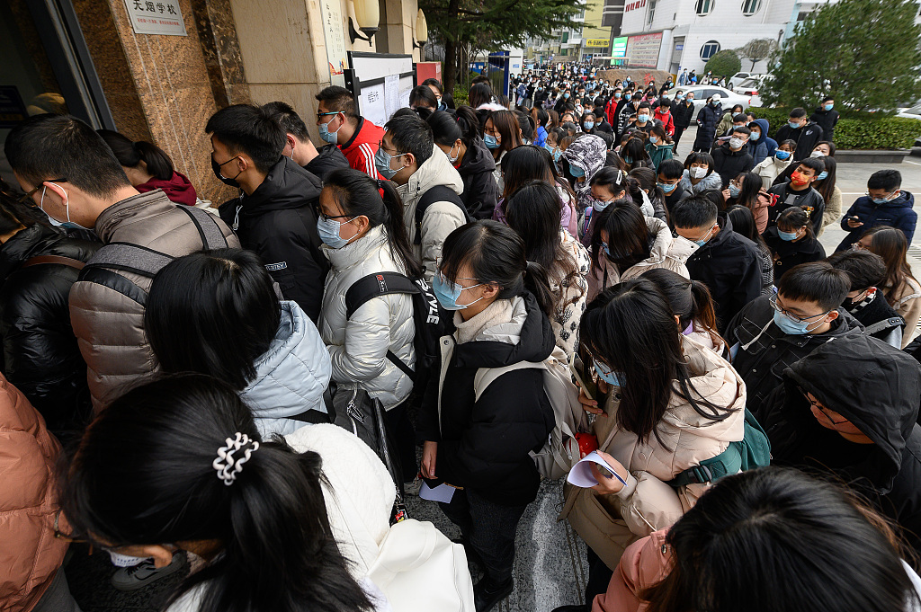 11月28日,2022年国家公务员考试在全国各地各考场同步开考,计划招录31242人,16745个岗位,相较于上一年度增加5516人,扩招21.4%,招录人数近年来首次突破3万。网上报名和资格审查工作结束后,共有212.3万人通过了用人单位的资格审查,通过资格审查人数与录用计划数之比约为68:1。图片来源:视觉中国