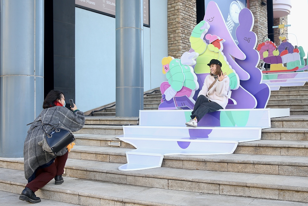 ​11月30日,北京街头出现了一些反映冬季冰雪运动的卡通雕塑和卡通宣传画,营造了浓郁的冬季冰雪运动氛围,迎接北京冬奥会。图片来源:视觉中国