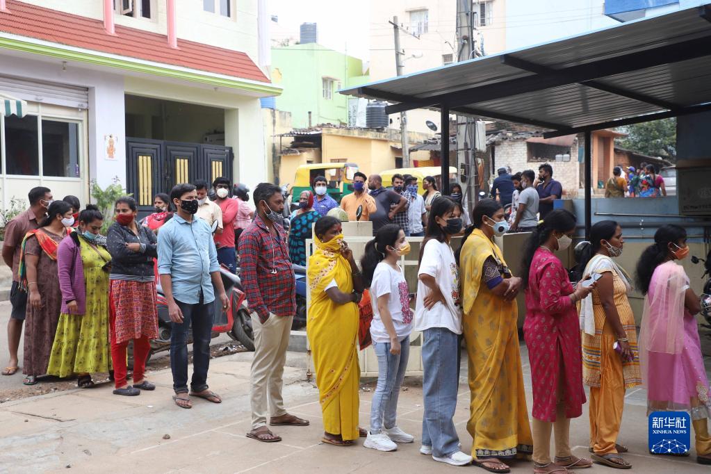 12月3日,人们在印度班加罗尔排队等待接种新冠疫苗。印度卫生部2日说,在该国卡纳塔克邦发现两例变异新冠病毒奥密克戎毒株感染病例,这是该国首次报告奥密克戎毒株感染病例。新华社发