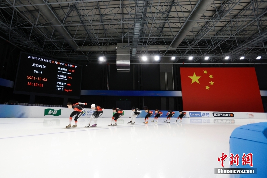 12月3日,位于北京的二七国家冰雪运动科训基地内,速度滑冰国家集训队正在紧张地训练中。中新社记者 韩海丹 摄