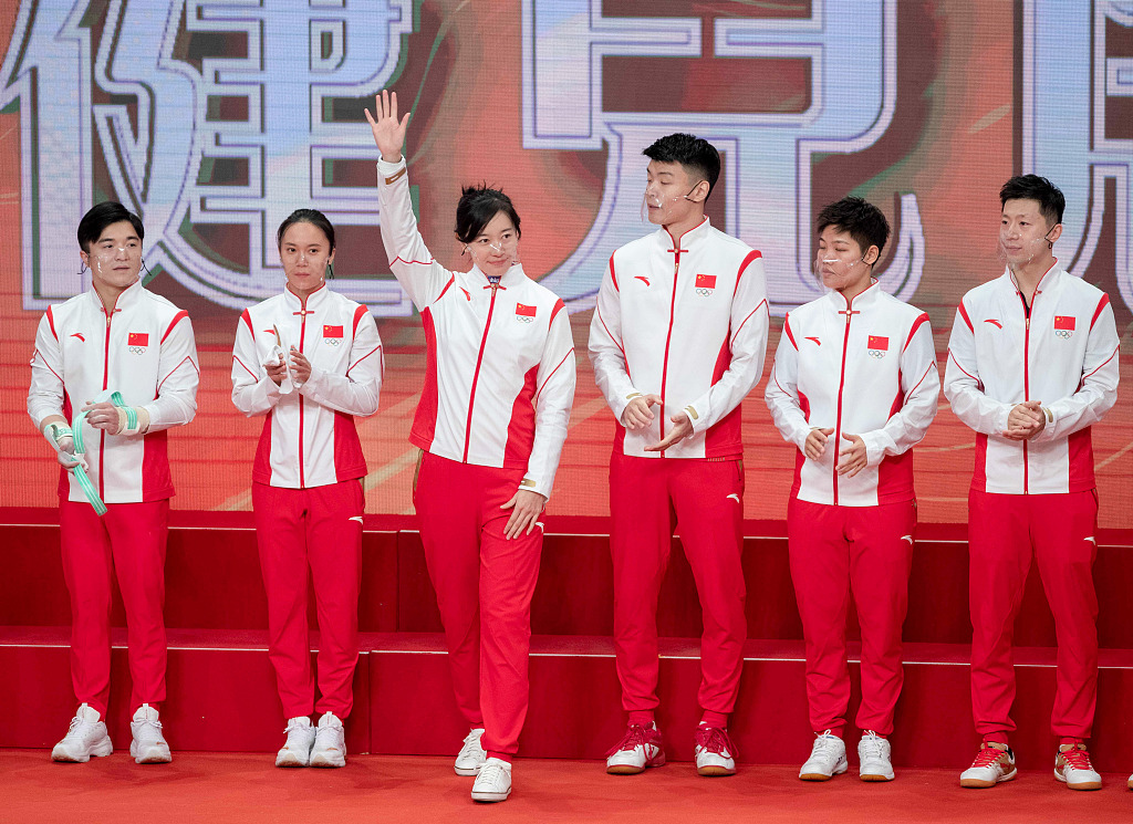 击剑运动员孙一文挥手致意。图片作者:萧梅麟/视觉中国