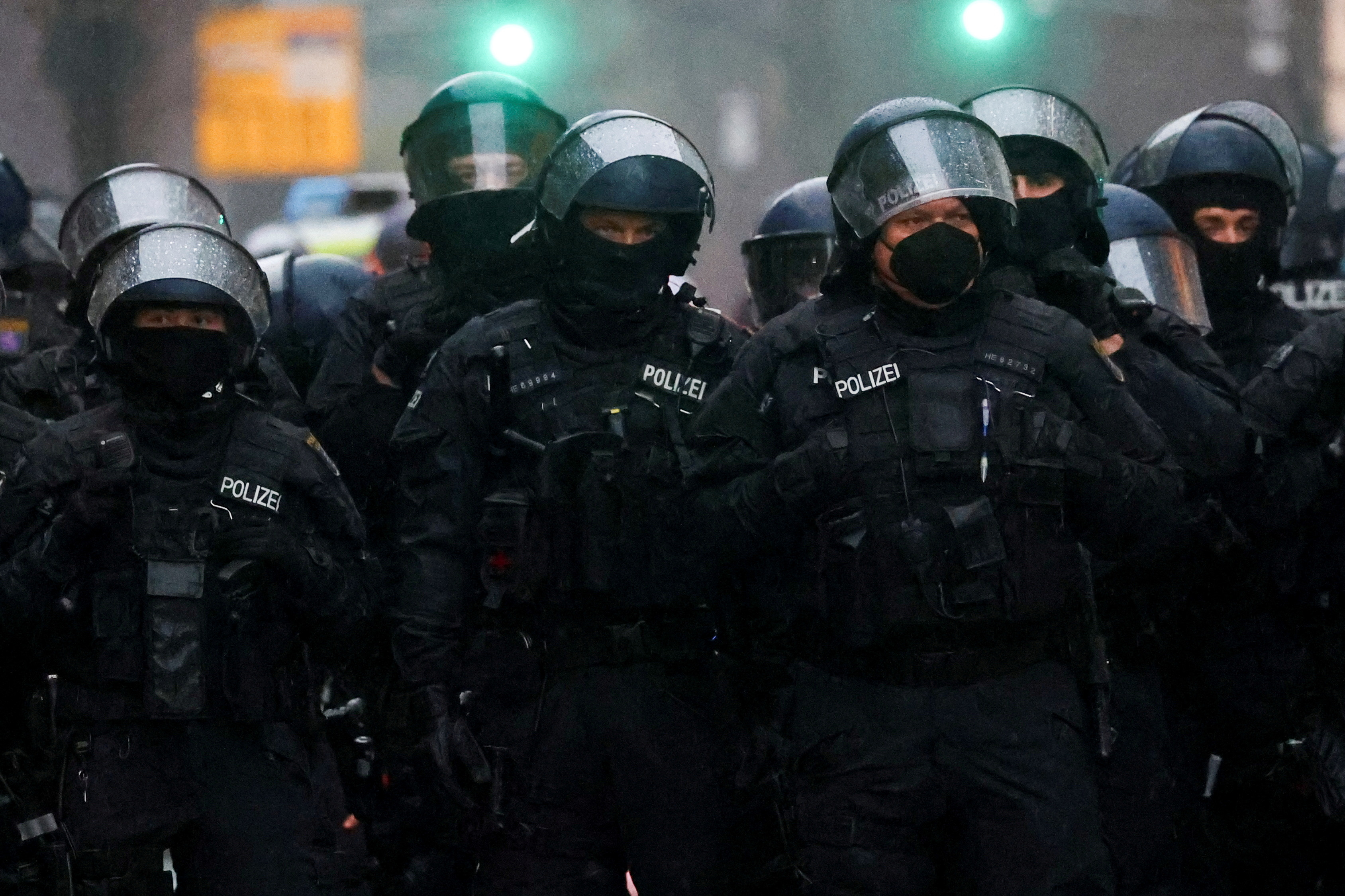 当地时间12月4日,德国法兰克福,当地爆发反对防疫措施游行。图片署名: 澎湃影像