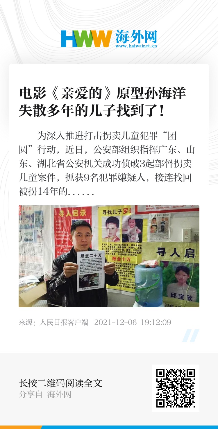 据了解,2004年12月19日,广东省茂名市杨某青夫妇到深圳罗湖公安机关报警,称儿子杨某弟(时年3岁)于当天上午在家附近失踪。2007年10月10日,湖北省监利县孙某飞(别名:孙海洋,电影《亲爱的》原型人物之一)到深圳南山公安机关报警,称儿子孙某(时年4岁)前一天在幼儿园附近失踪。同年12月28日,广东省深圳市彭某英到南山公安机关报警,称儿子符某涛(时年4岁)当天下午在家附近失踪。3起案件发生后,深圳市公安机关高度重视,先后成立专案组全力侦办案件,虽然受限于侦查手段和技术条件,案件多年来一直未取得突破,但办案民警始终不忘失踪儿童父母的殷切期盼,尽心竭力对每一条涉案线索进行分析研判,坚持不懈开展大量调查走访。