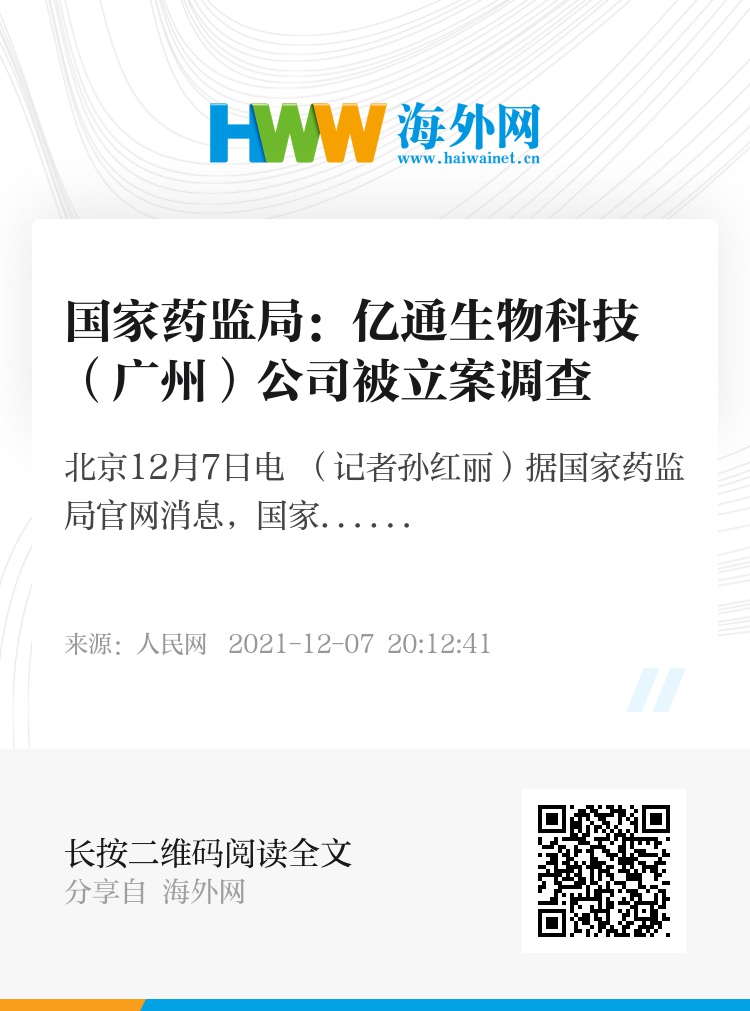 根据通告,近期,国家药监局组织对亿通生物科技(广州)有限公司进行了飞行检查。