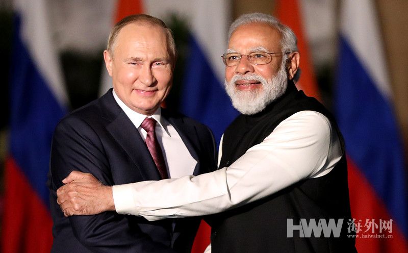 当地时间2021年12月6日,俄罗斯总统普京对印度进行为期一天的短暂访问,印俄两国领导人签署了28项协议。印度外交秘书哈什·什林拉当日晚间通报此次印俄两国领导人的会见成果时表示,加强双边贸易和投资是两国领导人会谈中的重要内容。(图:澎湃影像)