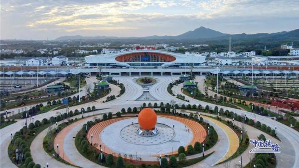 人信物丰地 玉带橙花开新建信丰西站位于赣州市信丰县城西南侧的城南生态新城,车站总规模为2站台4线,采用下进下出的进出站方式,站房总建筑面积9995.6平方米,最高可容纳800人。