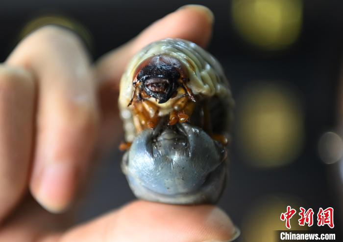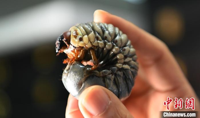 中新网成都12月7日电 (记者 安源)记者7日从成都华希昆虫博物馆获悉,中国最大甲虫阳彩臂金龟幼虫于近日在四川青城山被发现,这次的发现是世界上首次发现该物种自然繁育的幼虫。