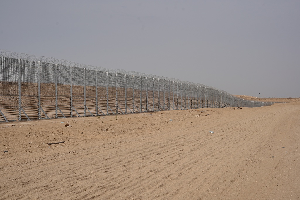 当地时间2021年12月7日,以色列国防部宣布,经过3年多施工,沿巴勒斯坦加沙地带的“智能”隔离墙修建完成。以国防部7日在一份声明中说,该“智能”隔离墙全长65公里,分为地上和地下两部分,沿隔离墙安装有数百个摄像头、雷达系统和传感设备。隔离墙还延伸至海上,配备有侦测海上越境人员的系统和可远程控制的武器系统。该隔离墙历时约3年半修建完成,使用超过14万吨钢铁。图片来源:人民视觉