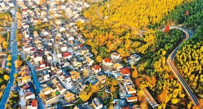 在浙江省湖州市安吉县天荒坪镇余村,整洁的村庄与青山、田园相映,构成一幅初冬的生态画卷,美不胜收,吸引游客前来游玩。谢尚国摄(人民图片)