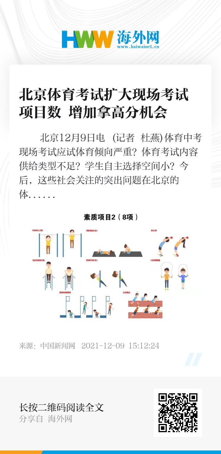 中新网北京12月9日电 (记者 杜燕)体育中考现场考试应试体育倾向严重?体育考试内容供给类型不足?学生自主选择空间小?今后,这些社会关注的突出问题在北京的体育考试中将得到解决。北京市委教育工委副书记、北京市教委新闻发言人李奕在今天召开的一场发布会上表示,北京将增加过程性考核积累,扩大现场考试项目数量,注重科学性、基础性和公平性,考虑选择的多样性和个体的差异性,让增加的项目和分数成为孩子健康生活理念养成和健康体魄形成的助推器。