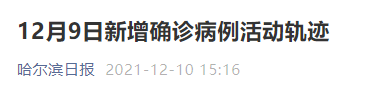 12月9日0时至24时,哈尔滨市传染病医院报告新增外省关联本土新冠肺炎确诊病例2例。目前在该定点医院接受隔离治疗。根据流调结果,现将其主要活动轨迹涉及场所发布如下: