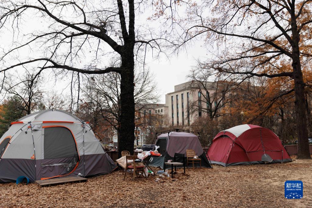 这是12月8日在美国华盛顿拍摄的无家可归者居住的帐篷。新华社发(沈霆 摄)