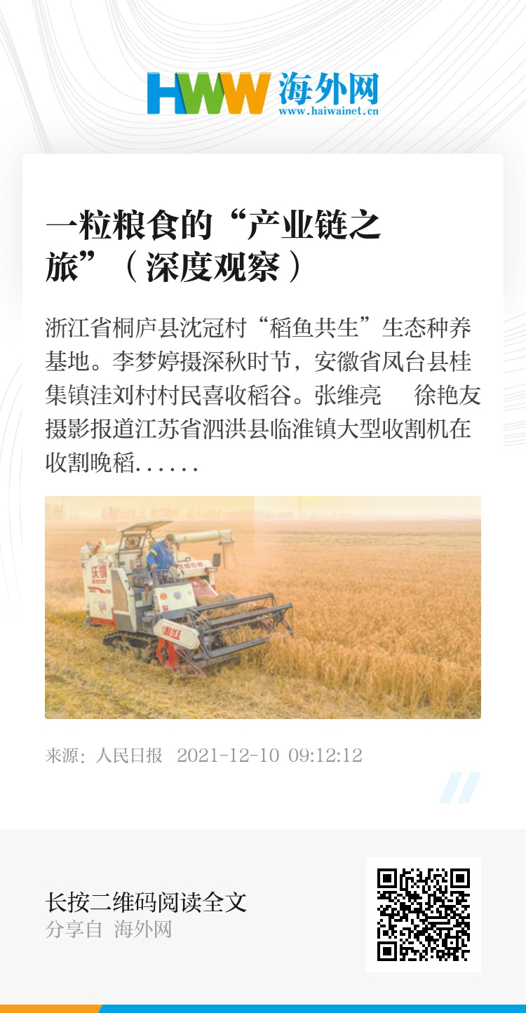 粮食生产茬茬相接,产业链条环环相扣。连年丰收保供稳价,正是来自这样一季又一季的接力。期待粮食产业链不断延展,结出更多实实在在的效益之果。(记者 郁静娴)