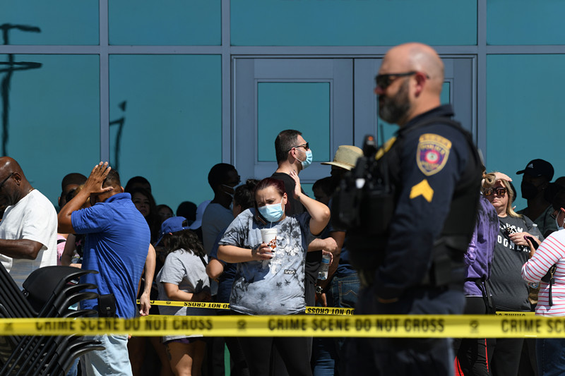 资料图:美校园枪击事件后,警方到场执法