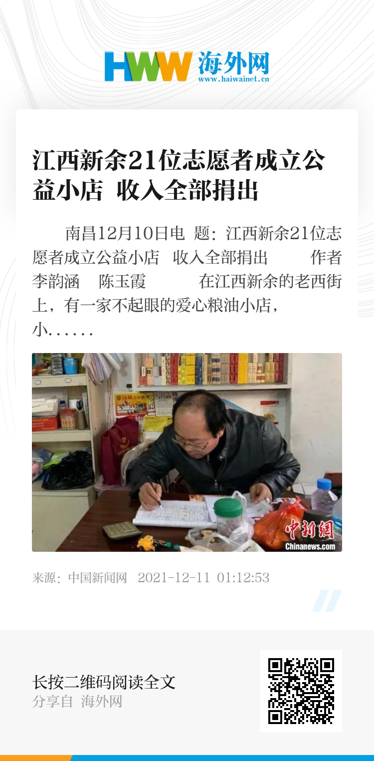 中新网南昌12月10日电 题:江西新余21位志愿者成立公益小店 收入全部捐出