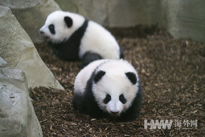 法国动物园的熊猫双胞胎蹒跚学步 样子萌萌哒