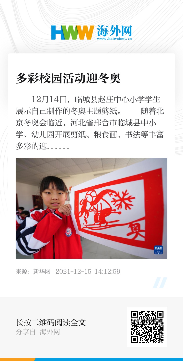 随着北京冬奥会临近,河北省邢台市临城县中小学、幼儿园开展剪纸、粮食画、书法等丰富多彩的迎冬奥主题创作活动。