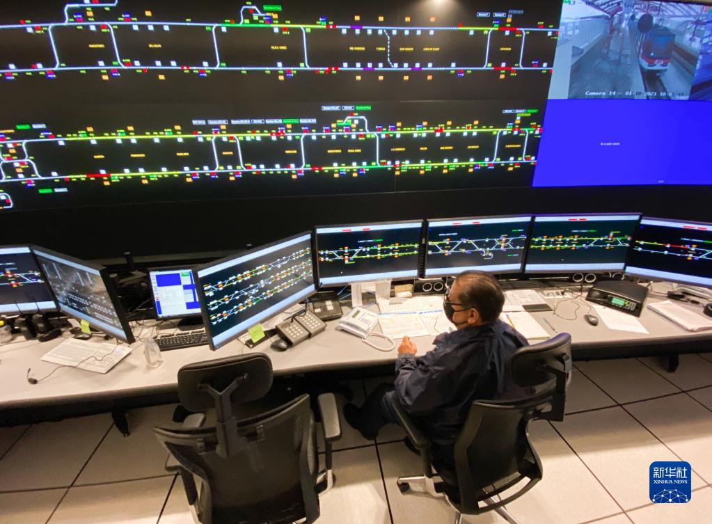 这是10月1日拍摄的墨西哥蒙特雷一处轻轨调度中心(手机拍摄)。新华社发(里卡多·蒙托亚摄)
