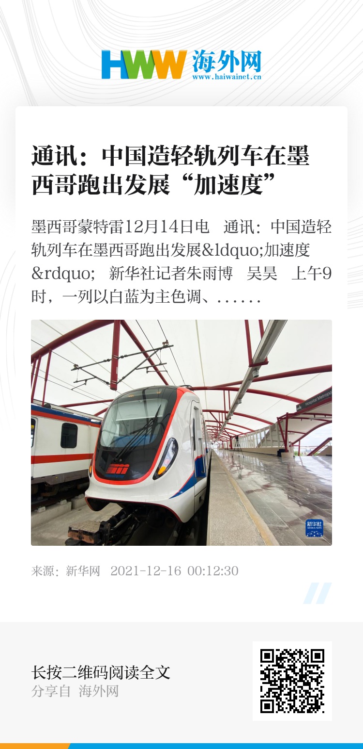 新华社墨西哥蒙特雷12月14日电 通讯:中国造轻轨列车在墨西哥跑出发展“加速度”