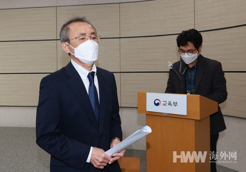 据韩联社2021年12月15日报道,韩国教育课程评价院院长姜泰重当天在政府世宗办公大楼举行记者会,就2022年度高考科目之一——生命科学2有一考题出错一事道歉并宣布引咎辞职。首尔行政法院当天就92名高考生针对评价院提起的生命科学2考题出错案作出判决,裁定原告胜诉,要求评价院取消对题目中原“正确答案”的决定。(图:澎湃影像)