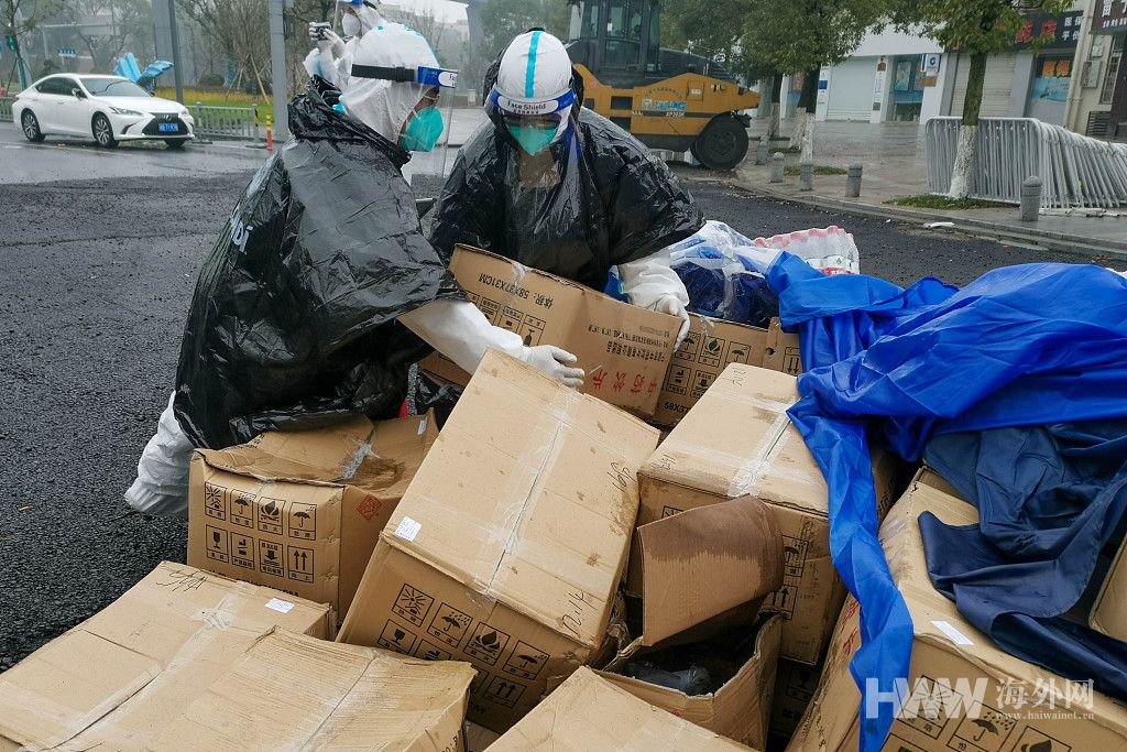 2021年12月16日,浙江省宁波市镇海区蛟川街道的党员志愿者、下沉干部为做好疫情防控,不畏风雨,从清晨开始着手准备,奔赴一线坚守卡口、搬运物资、整理档案、街道宣传等,彰显关键时刻党员风采。(图:视觉中国)