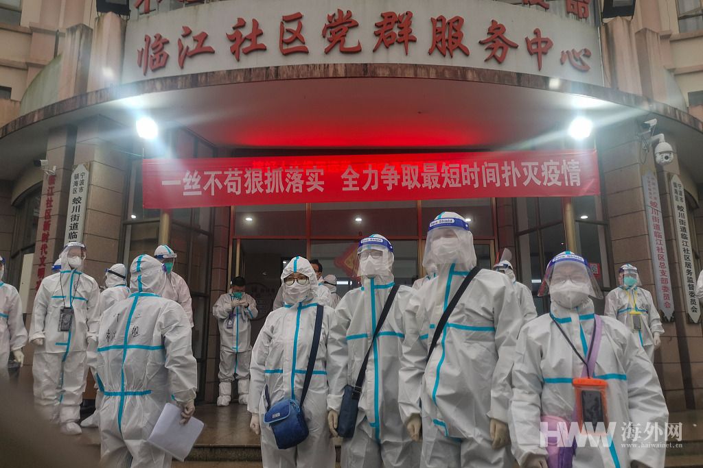 2021年12月16日,浙江省宁波市镇海区蛟川街道的党员志愿者、下沉干部为做好疫情防控,不畏风雨,从清晨开始着手准备,奔赴一线坚守卡口、搬运物资、整理档案、街道宣传等,彰显关键时刻党员风采。(图:视觉中国)