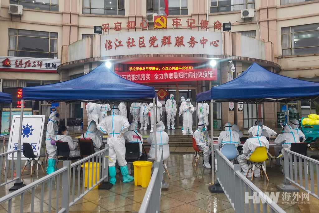 2021年12月16日,浙江省宁波市镇海区蛟川街道的党员志愿者、下沉干部为做好疫情防控,不畏风雨,从清晨开始着手准备,奔赴一线坚守卡口、搬运物资、整理档案、街道宣传等,彰显关键时刻党员风采。(图:视觉中国)