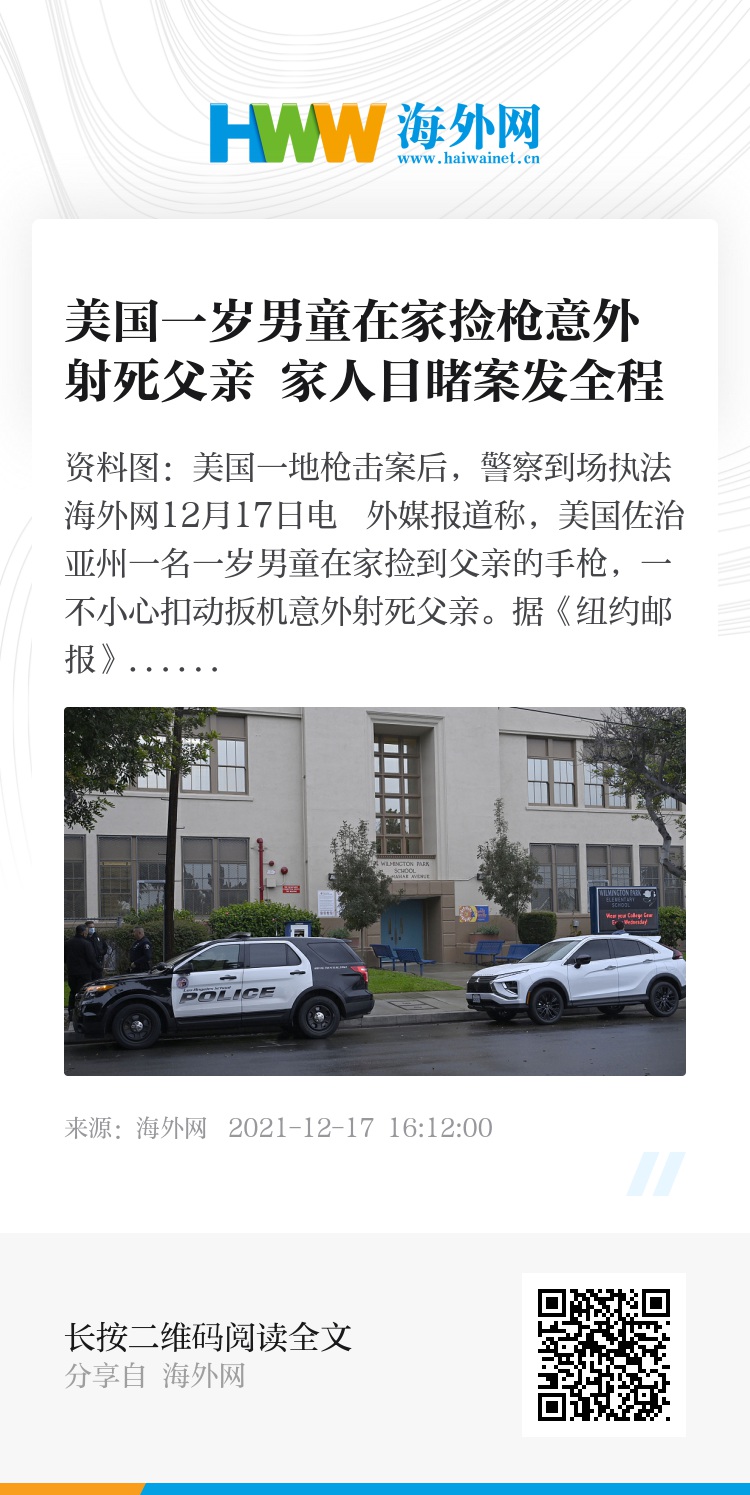 海外网12月17日电 外媒报道称,美国佐治亚州一名一岁男童在家捡到父亲的手枪,一不小心扣动扳机意外射死父亲。