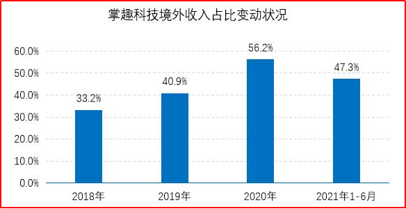 2020年,掌趣科技境外营收达到10.06亿元,占公司总体营业收入比重56.24%,海外收入第一次超过国内收入。而且,据了解,今年上半年,掌趣科技海外收入仍旧保持较高份额,全球化优势继续夯实。