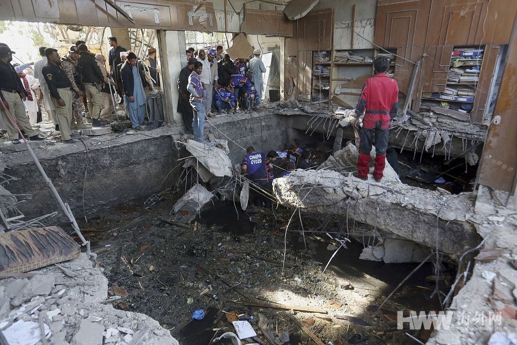 当地时间2021年12月18日,巴基斯坦南部信德省卡拉奇市一栋建筑物发生爆炸,至少10人死亡、12人受伤。报道援引当地警方和医院消息人士的话说,爆炸发生在一栋两层建筑物的一层,楼内有一家银行和其他多间办公室。爆炸导致建筑物部分坍塌,恐有多人被困。报道说,爆炸发生后,救援人员立即赶往现场展开救援,伤者被送往医院救治,大多数伤者伤势严重。目前,大型机械已抵达现场参与救援。报道还援引卡拉奇警方声明说,爆炸由燃气泄漏引发。(图:视觉中国)