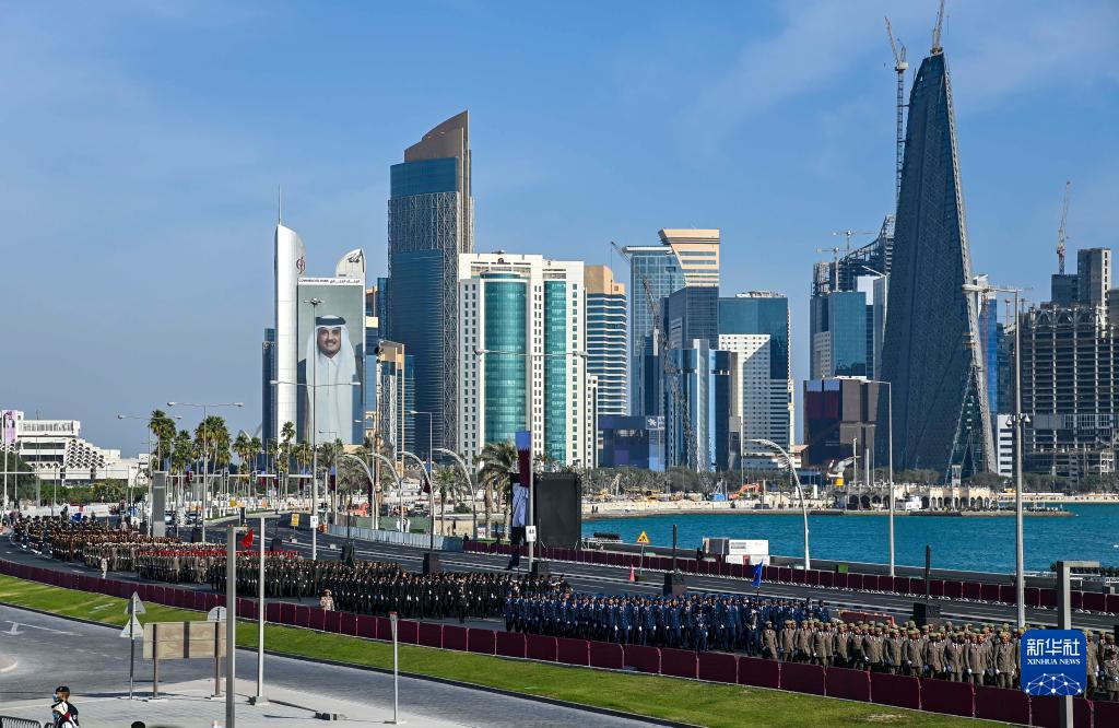 这是12月18日在卡塔尔首都多哈拍摄的国庆阅兵式现场。18日,卡塔尔首都多哈举行盛大的阅兵式。当日是卡塔尔国庆日。新华社发(尼库摄)