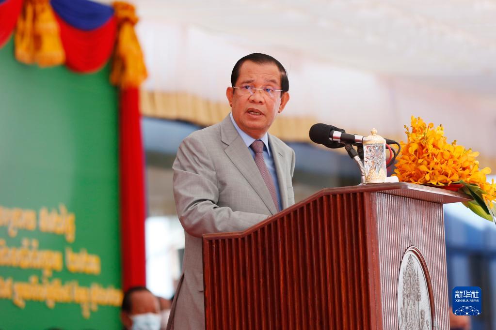 12月18日,柬埔寨首相洪森在金边举行的柬埔寨国家体育场启用仪式上讲话。新华社发(索万纳拉摄)