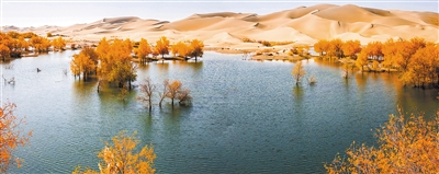 又到了胡杨叶黄的季节,塔里木河两岸,金灿灿的胡杨,如油画一般在塔克拉玛干沙漠铺开,煞是美丽……