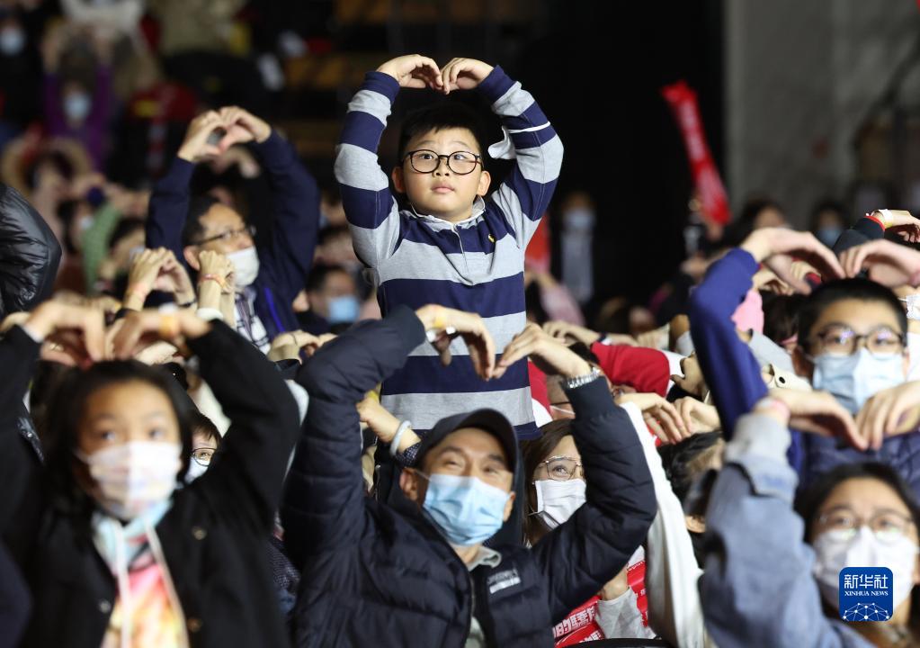 12月20日,澳门市民在活动中与内地奥运健儿代表团成员互动。当日,内地奥运健儿代表团在澳门东亚运动会体育馆参加“我们的骄傲——国家奥运精英运动员澳门联欢会”活动,与澳门市民互动交流。新华社记者 贾浩成 摄