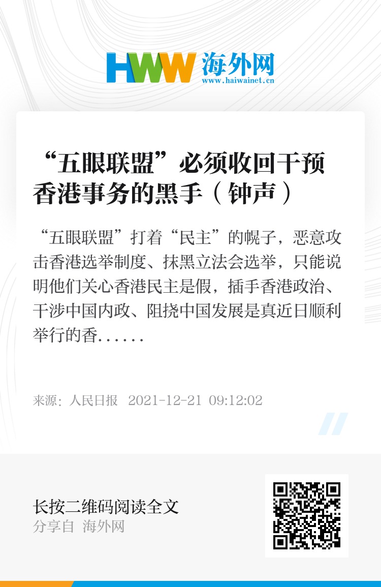 “五眼联盟”打着“民主”的幌子,恶意攻击香港选举制度、抹黑立法会选举,只能说明他们关心香港民主是假,插手香港政治、干涉中国内政、阻挠中国发展是真
