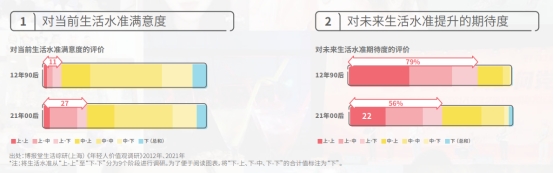 图:“对当前生活水准满意度”(左)和“对未来生活水准提升的期待度”(右)