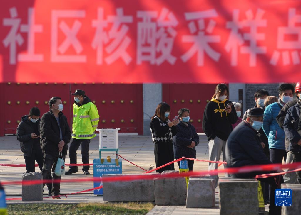 12月21日,居民在西安市开通巷社区核酸采样点排队接受核酸检测。当日,西安全面展开新一轮全员核酸检测。新华社记者 李一博 摄