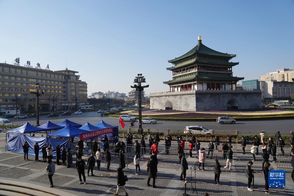 12月21日,市民在西安市柏树林街道三学街社区核酸检测点排队等待核酸检测。当日,西安全面展开新一轮全员核酸检测。新华社记者 李一博 摄