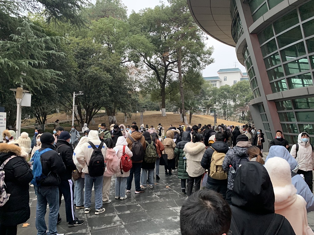 12月25日,武汉,2022研究生考试华中师范大学考点,考生等待入场。 图片作者:段智为/视觉中国