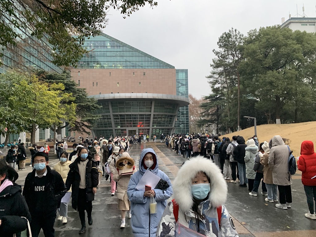 12月25日,武汉,2022研究生考试华中师范大学考点,考生等待入场。 图片作者:段智为/视觉中国